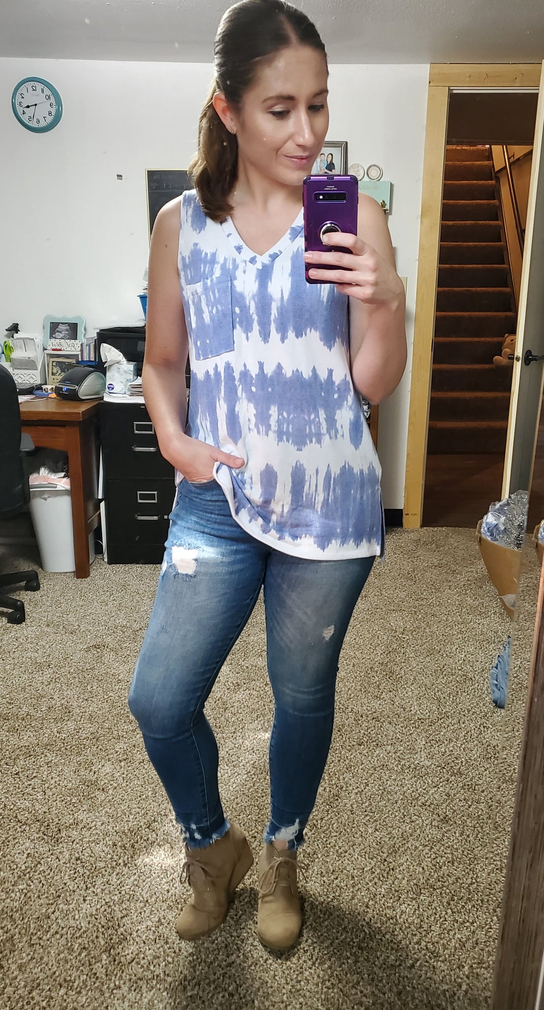 Blue Tie Dye Vneck Tank